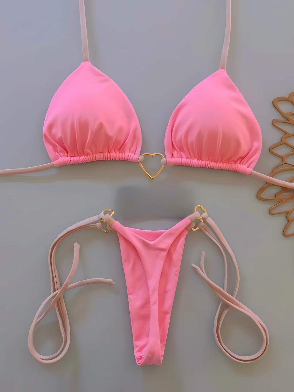 New Nylon Solid Color Love Bikini Suit